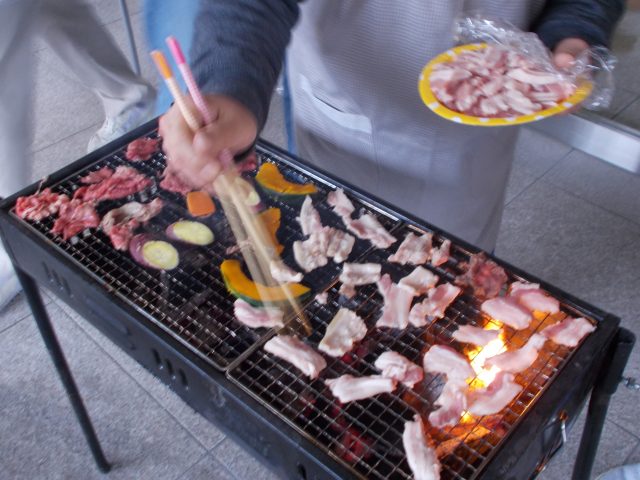 2017.12.04 バーべキューやりました。 遅くなりましたが、11/25(土)にバーベキューをやりましたので、そのご報告を。 まずは準備。 さあ、焼きましょう! 食べる前にスープを。マイタケ入りです。キノコ類に含まれるβグルカンという物質が、血糖値や血中中性脂肪の急激な上昇を抑えてくれるとのこと。 お肉はもちろん、野菜もいただきました。みんな大満足の1日でした。