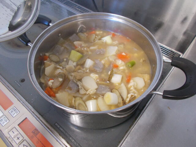 「Cooking」プログラムでは、炊き込みご飯とけんちん汁を作りました