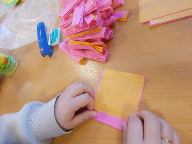 出来上がった作品は、「ひな飾り&第15回アール・ブリュット展」に出品します