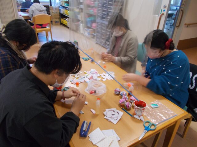 「1日プログラム」と「手工芸」プログラムや「自主活動」の時間を利用して作業を進めます