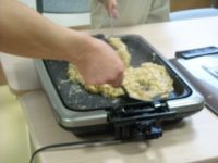 もんじゃ焼きを作りました。 隠し味はベビースターラーメン。 Kさんお手製の土手に、一気に流し込みます。 あっという間に完食。 お好み焼きも良いですが、もんじゃ焼きもね。